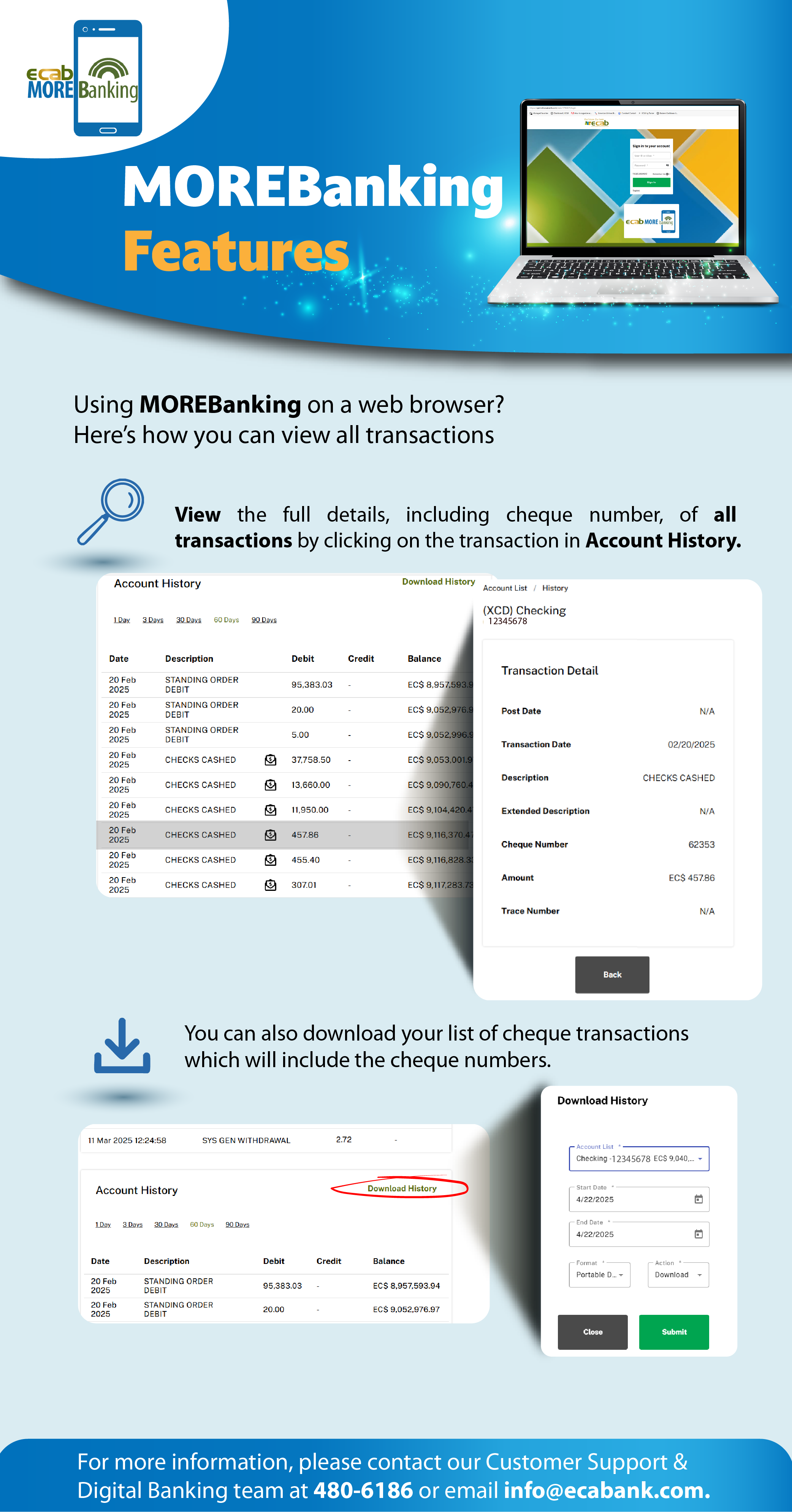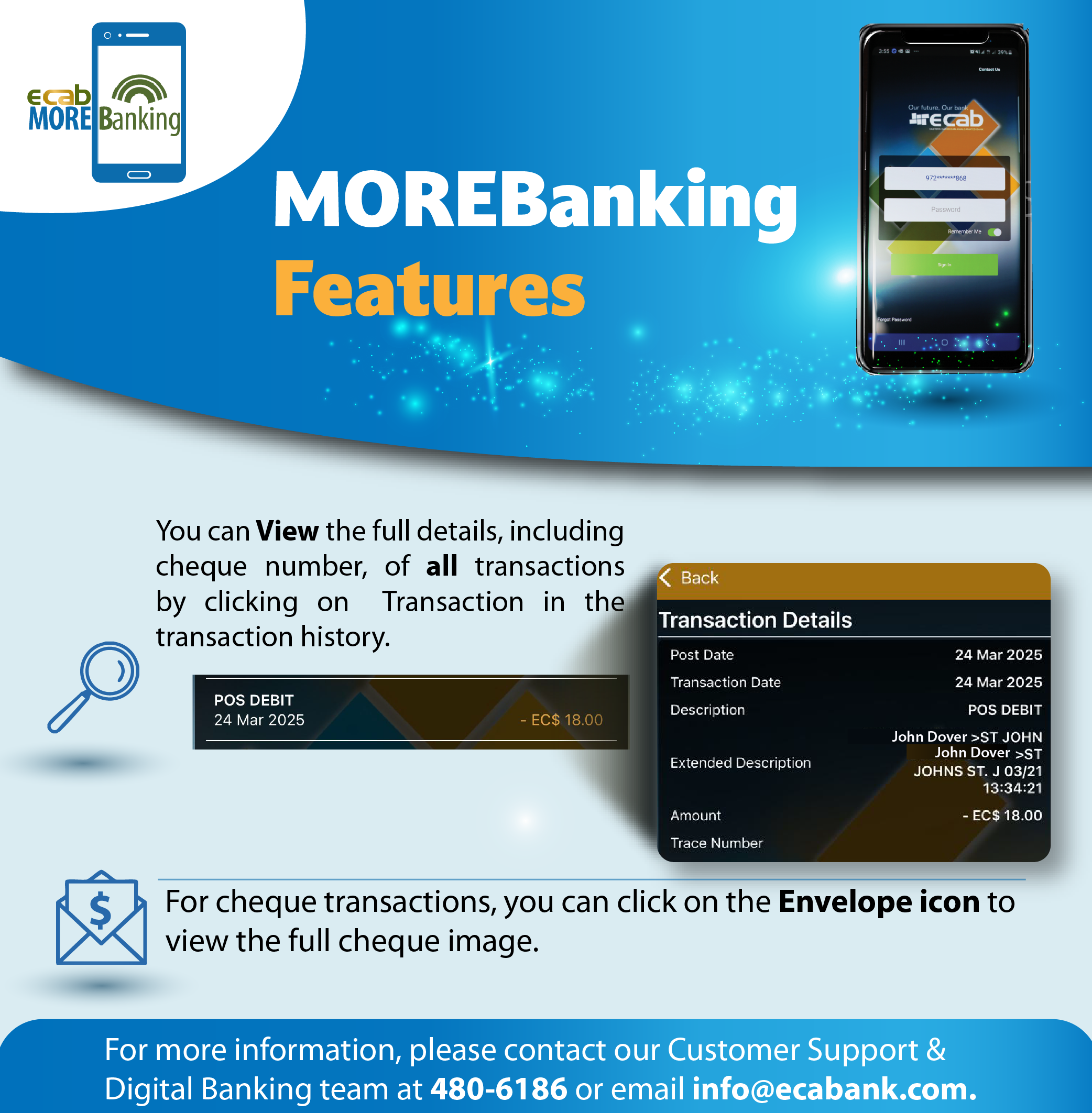 At ECAB, we are committed to providing you with secure, convenient, and accessible banking solutions to suit your lifestyle. Our MOREBanking online and mobile app makes managing your finances easier, anytime and anywhere.